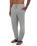 • Light gray heather knit straight leg pants.
