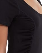 • Black scoop neck tee.